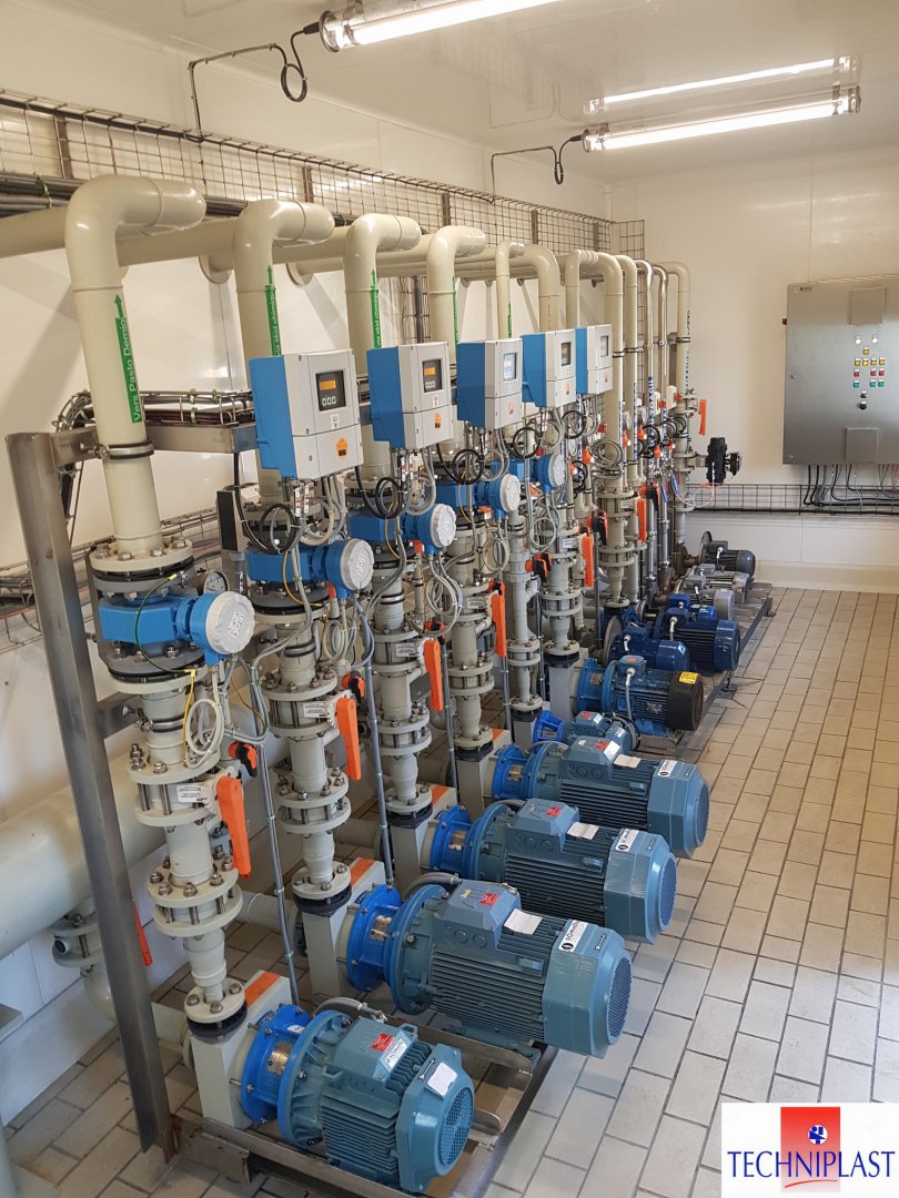 Le collecteur principal PPH ainsi que le supportage inox ont été réalisés en nos ateliers de GROSTENQUIN (57). Les tuyauteries de liaisons ont été par contre polyfusées et installées sur site par nos équipes de chantier permettant à notre client d'optimiser en toute collaboration l'ergonomie des points de manoeuvre et de lecture.